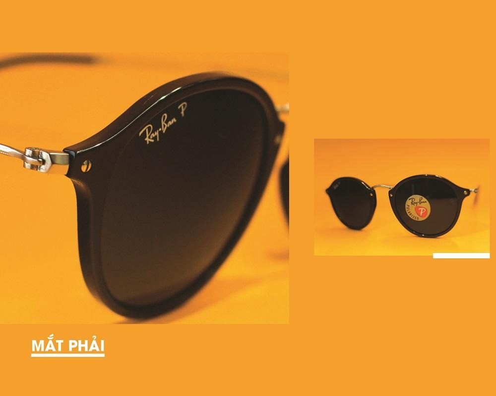 Kính Rayban chính hãng nổi bật với các chi tiết nhận diện tinh xảo: logo Rayban khắc laser sắc nét ở góc trên tròng phải, chữ ‘RB’ khắc trên tròng trái gần bản lề, cùng tròng kính làm từ thủy tinh hoặc polycarbonate cao cấp, không cong vênh hay biến dạng khi nhìn qua.